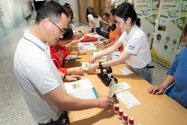 一粒种子的时空之旅:现场展示节水抗旱稻模型、砻谷机、节水抗旱稻大米、米浆、面膜等,让读者在室内步行间就能了解到从“一株稻”到“一粒米”再到大米深加工产品的全产业链。现场读者还体验了首套节水抗旱稻主题叠色章,并将节水抗旱稻米浆带回家品尝。