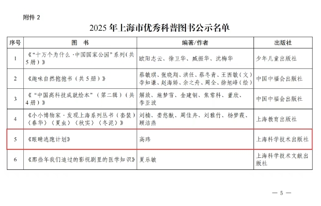 上海科学技术出版社共有6种图书入选2025年上海市优秀科普图书名单,占全市获奖图书的30%。