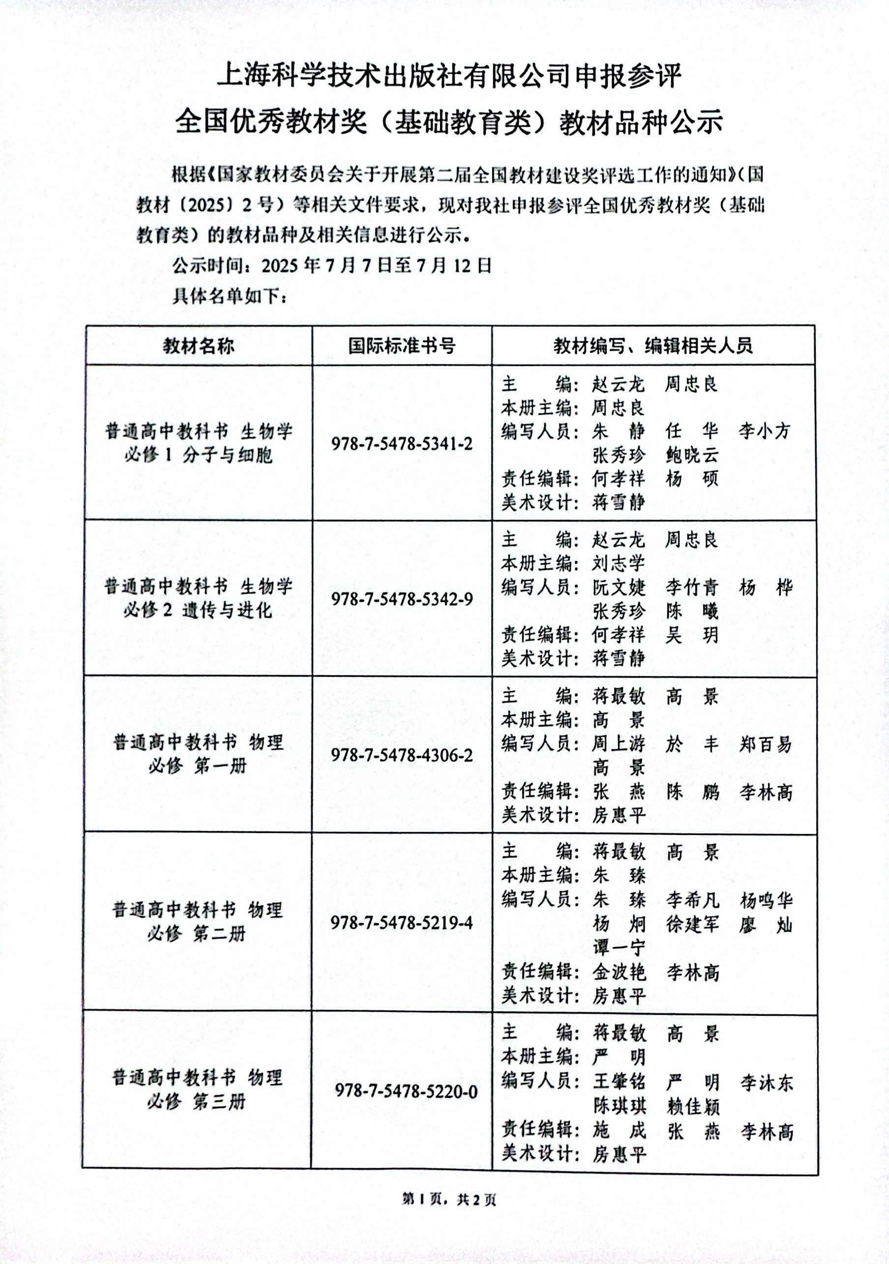 喜报 | 我社2种教材入选第二届全国教材建设奖拟奖励名单